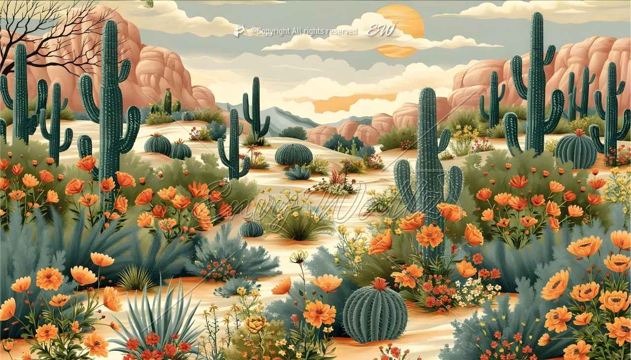 Desert Splendor: A Tapestry of Cactus and Flowers