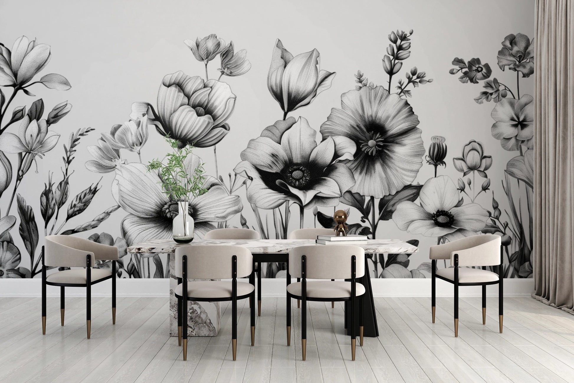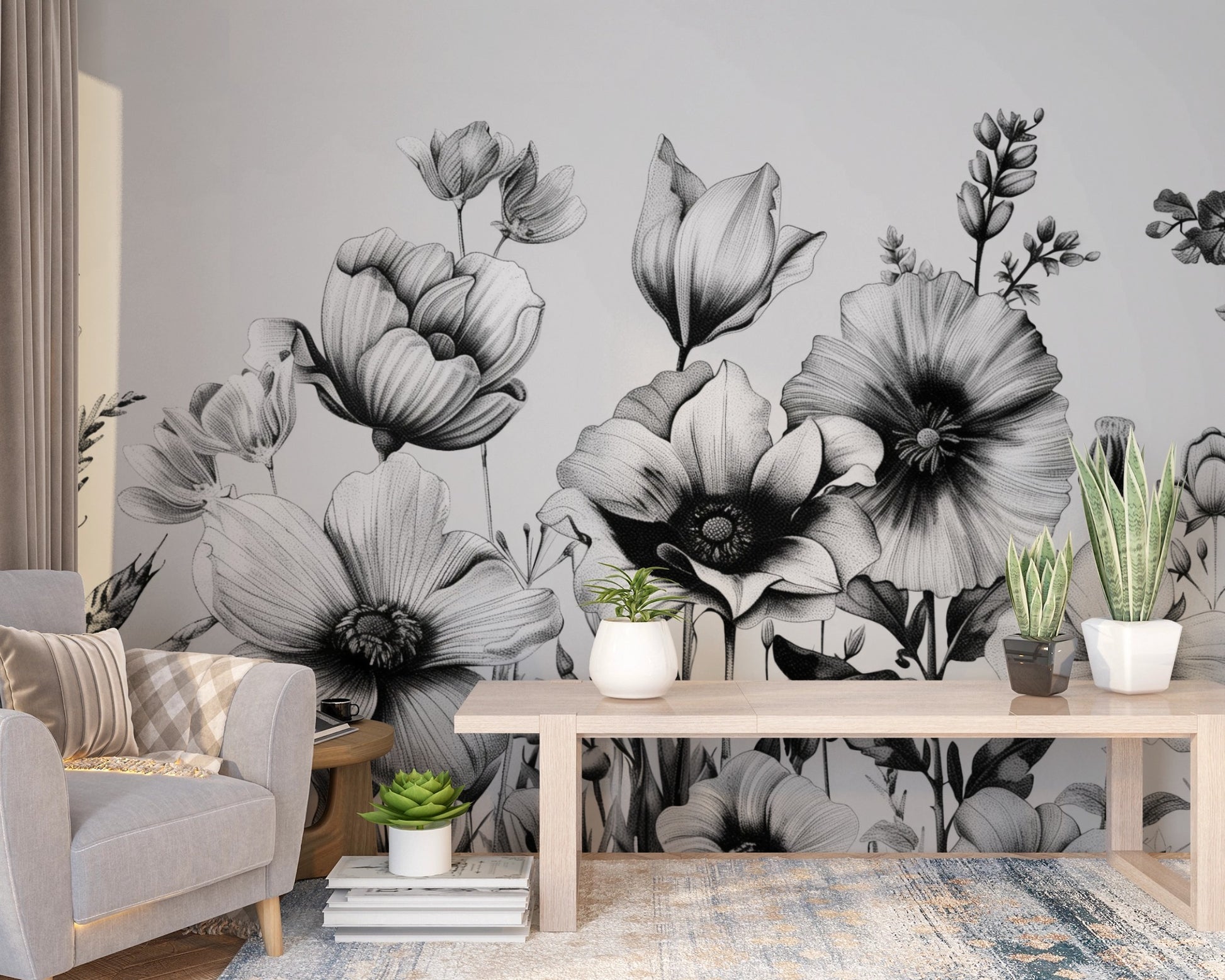 Black and White Botanical Elegance: Timeless Floral Illustration