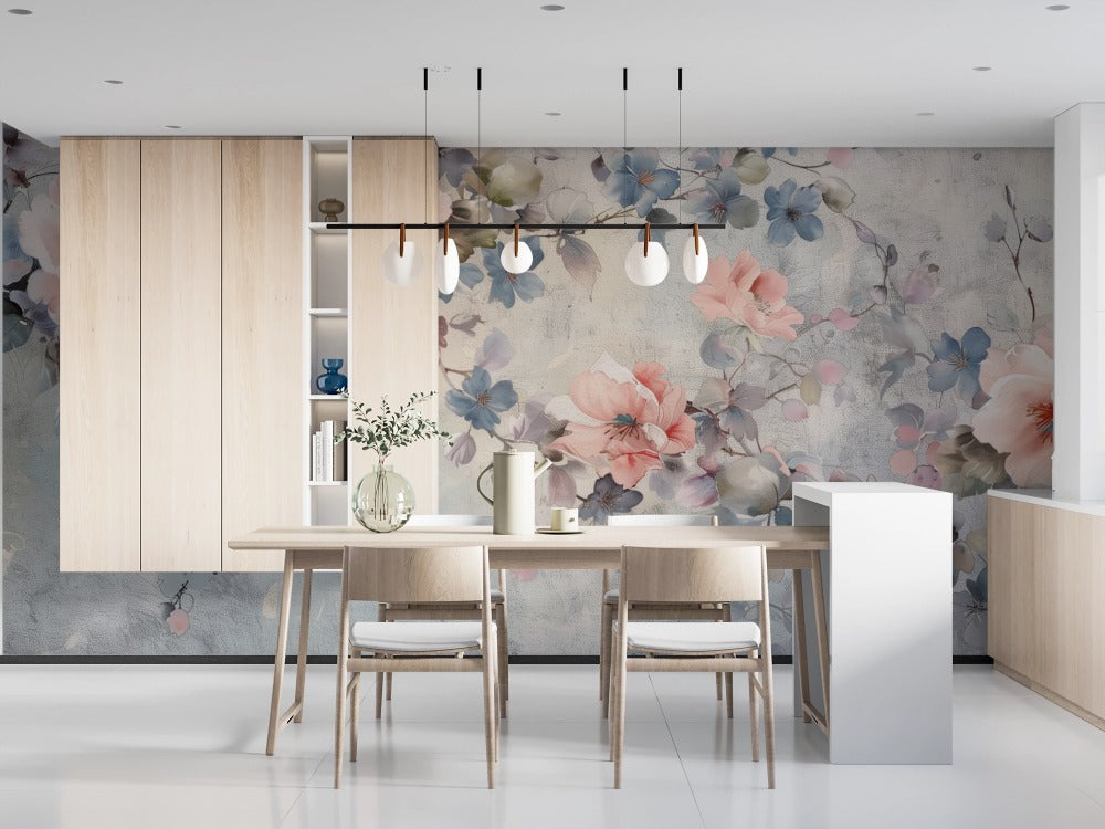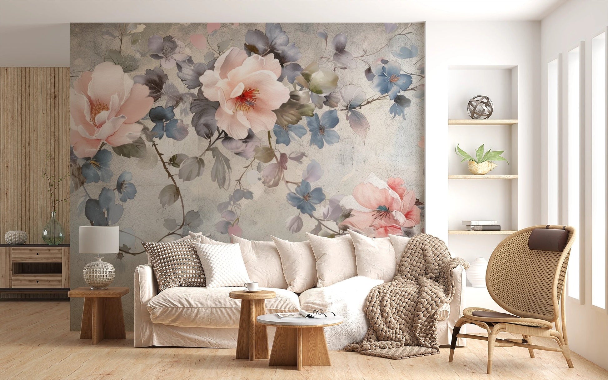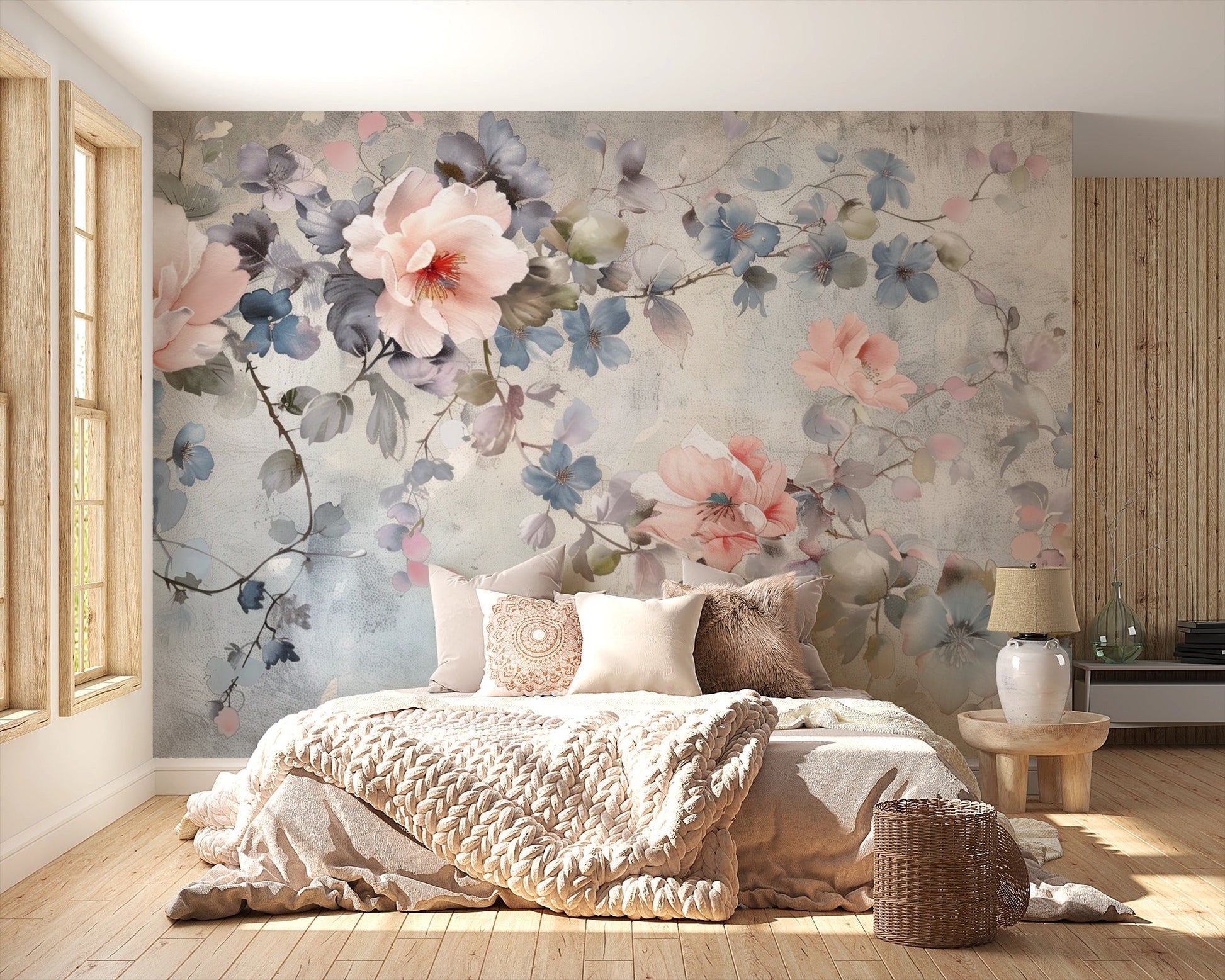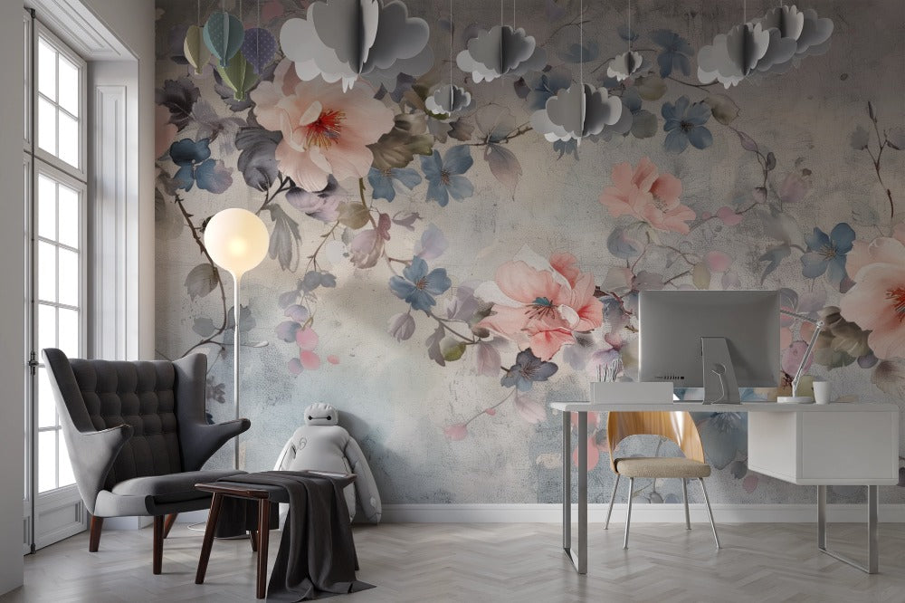 Discover the subtle charm of "Ink Veil: Pink Petals and Grey Leaves in Watercolor" from EnvyWallz, a mural that features a delicate and ethereal aesthetic with pink flowers and grey leaves on a watercolor background. This evocative design is perfect for those looking to add a touch of sophistication and serenity to their spaces, ideal for environments that value elegance and tranquility.